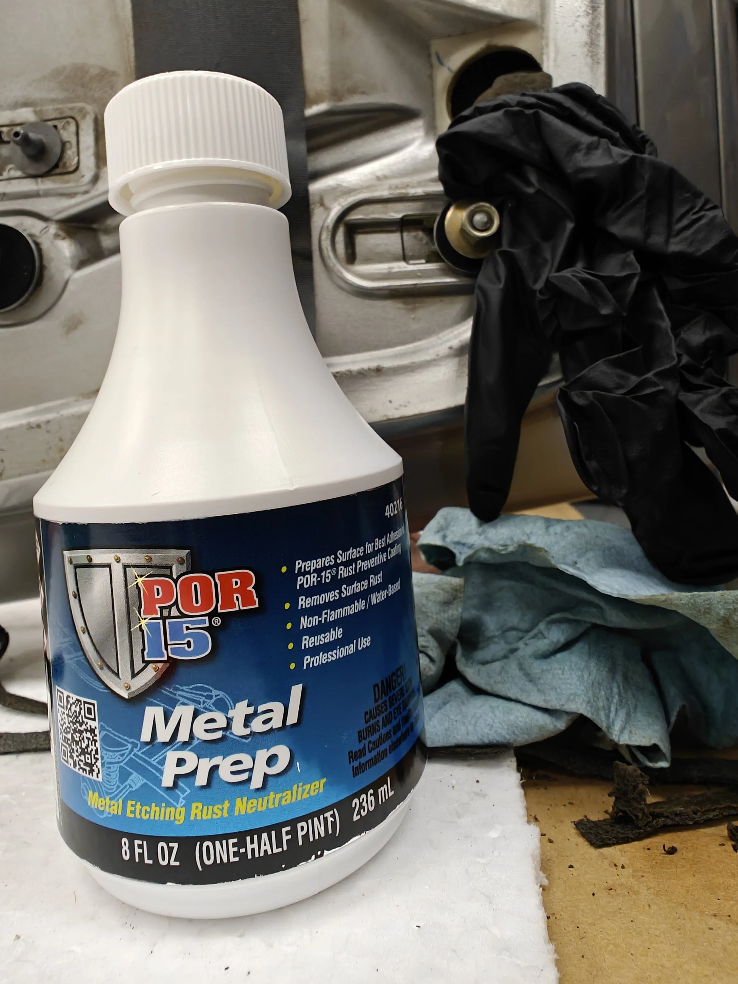 With that complete we will begin by prepping the surface with Metal Prep for a proper rust prevention coating. I filled a glove finger with this and waited the allotted time.
