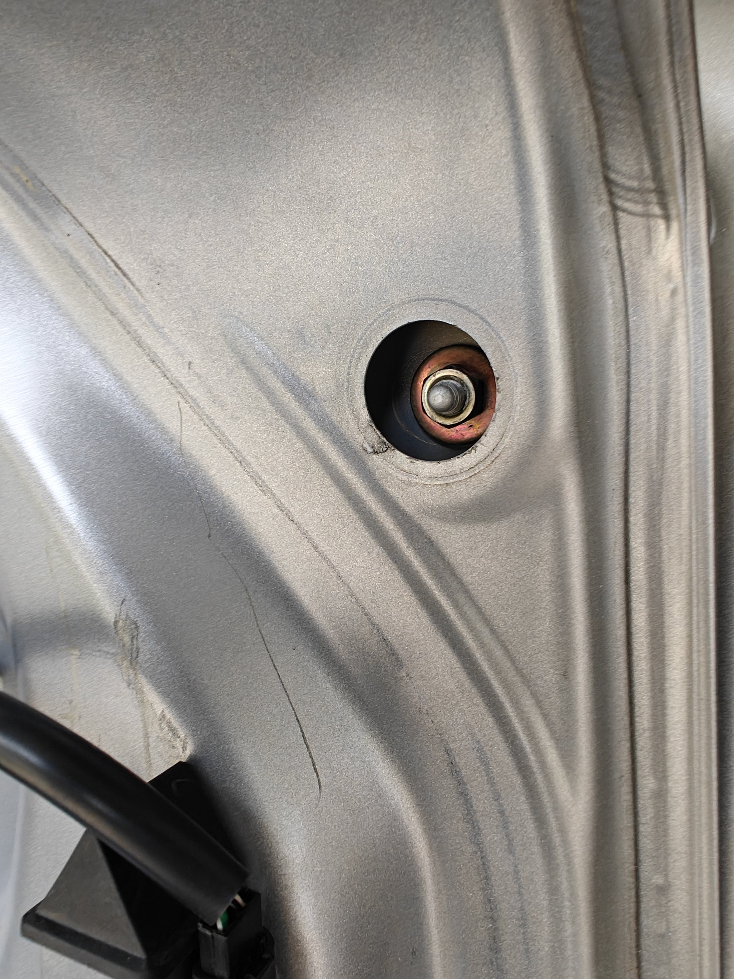 It would be nice to seal water from entering under the wing but that is not really an option.. as it would find a way in but not out, thus causing more rust. I spent a good time soaking the slide bolts in rust remover and two bolts were able to be removed. As shown below I used picks to try and chip away at the rust and a screwdriver to tap gently hoping it would come free. During removal of one of those bolts I was tapping progressively harder and ended up damaging the plastic holder.