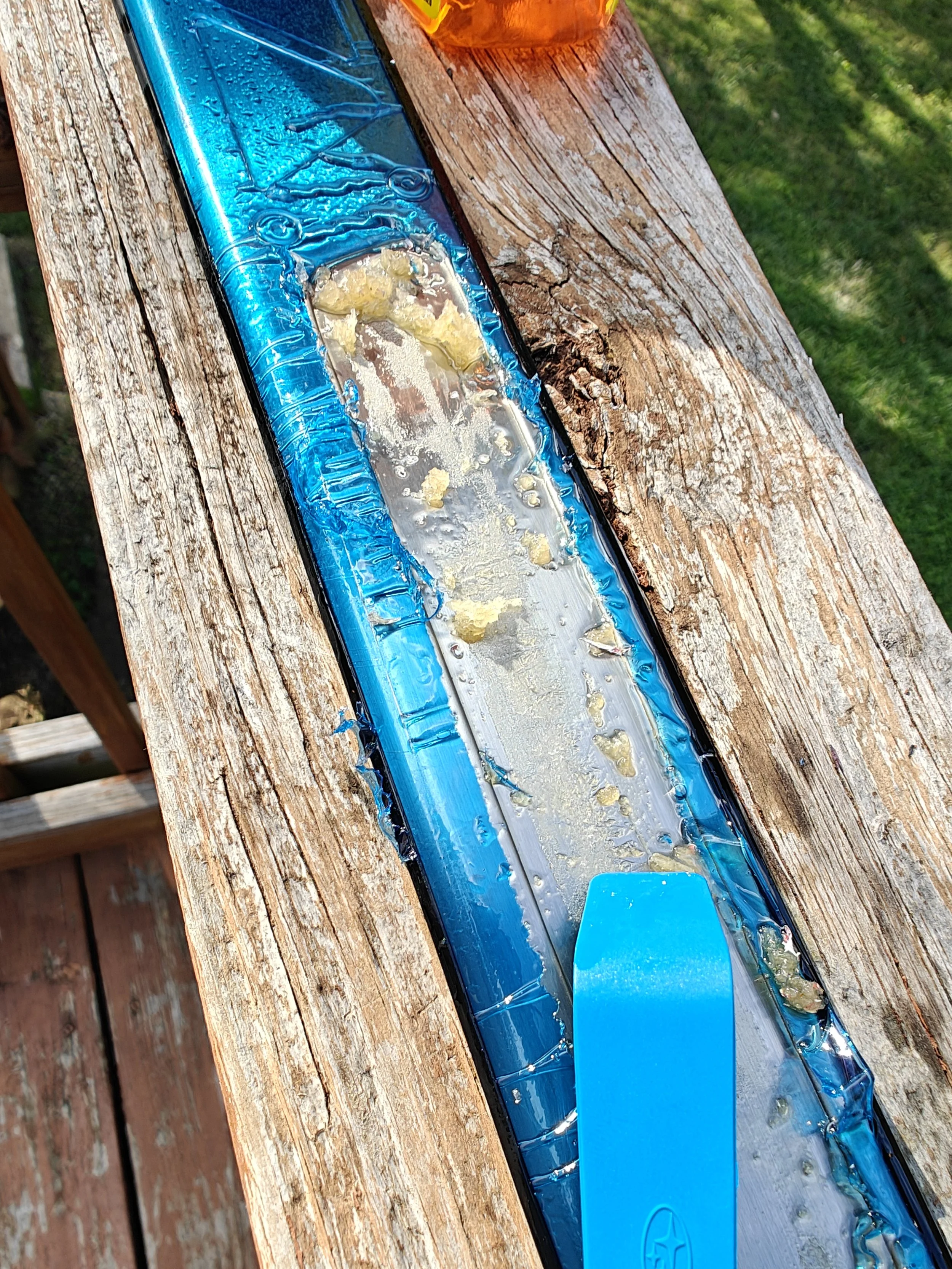 Next up is cleaning the center section, you can use soap or degreaser to prep the surface before applying your new decals. It is time to center the decals and install them.