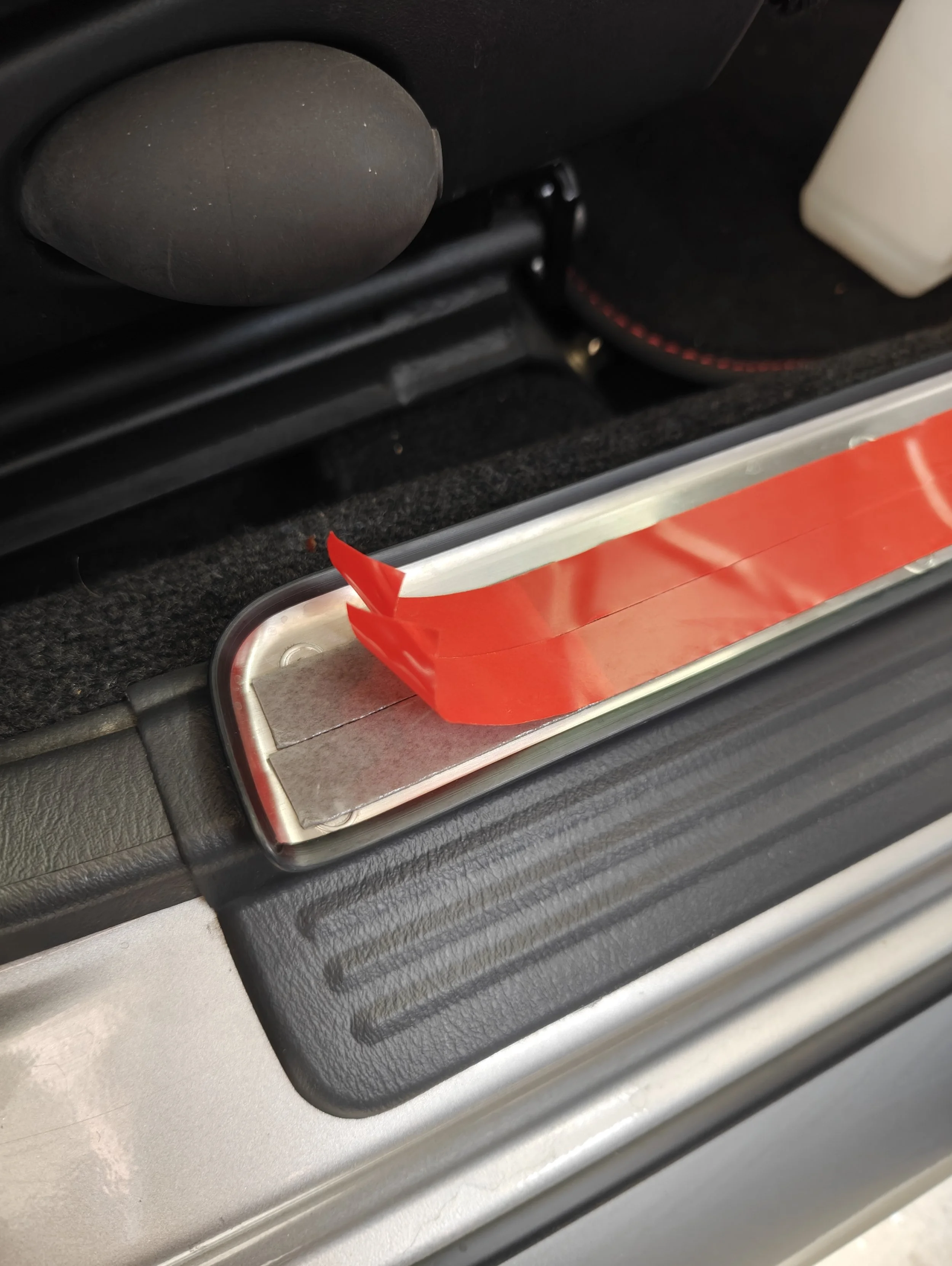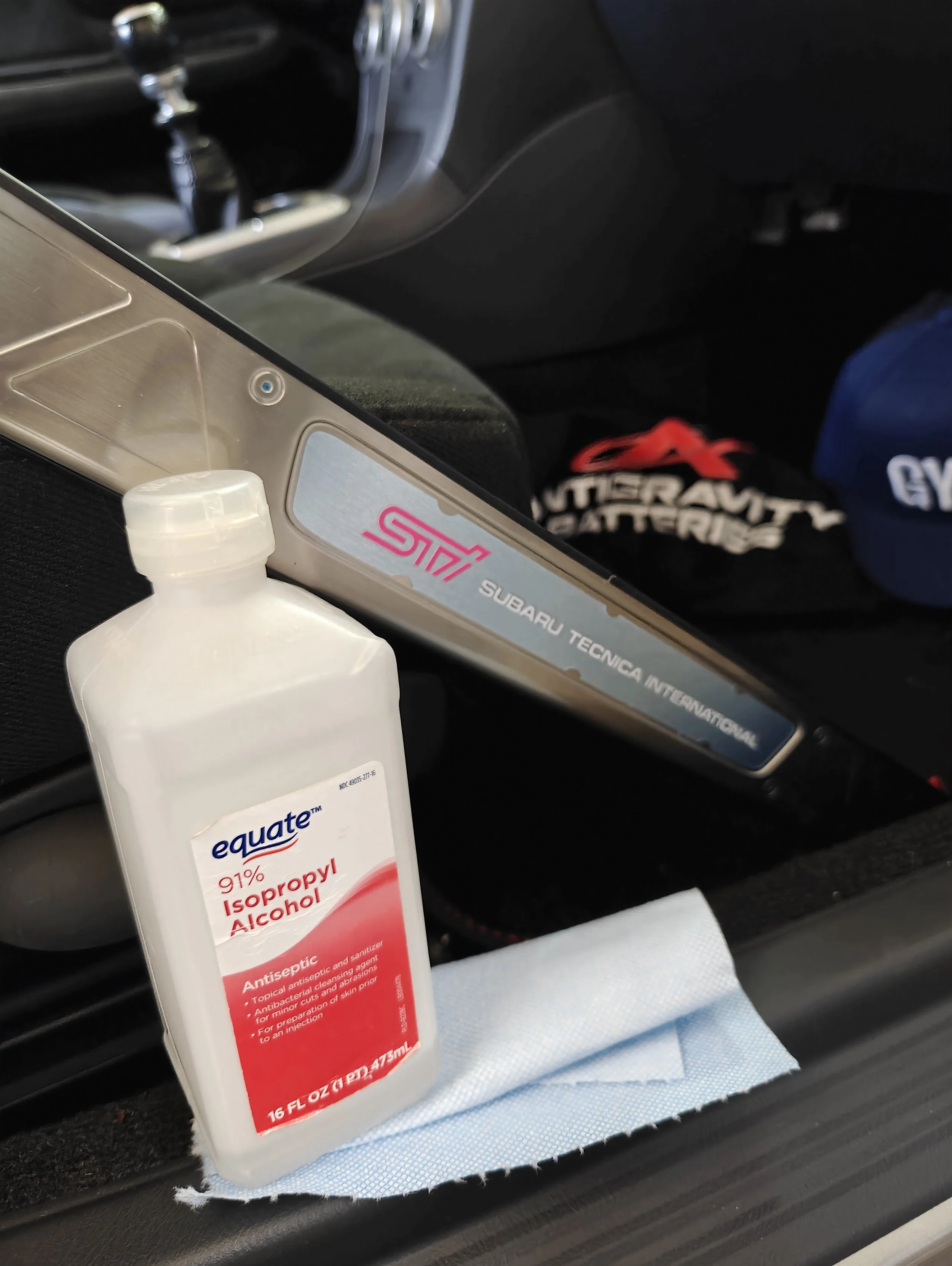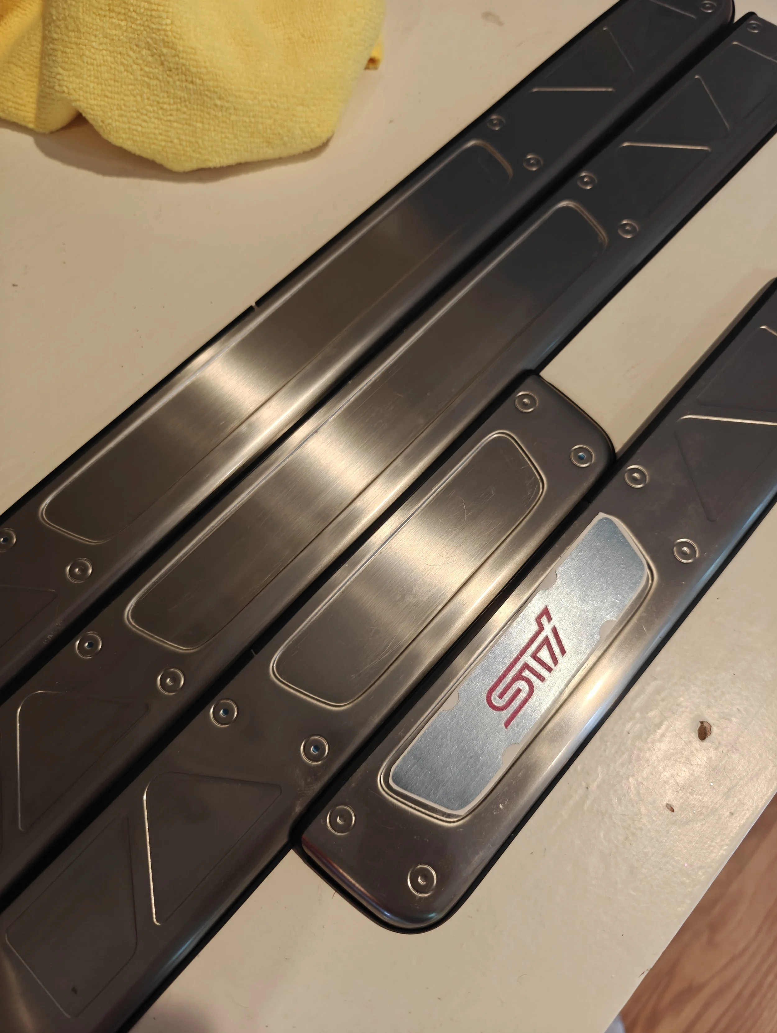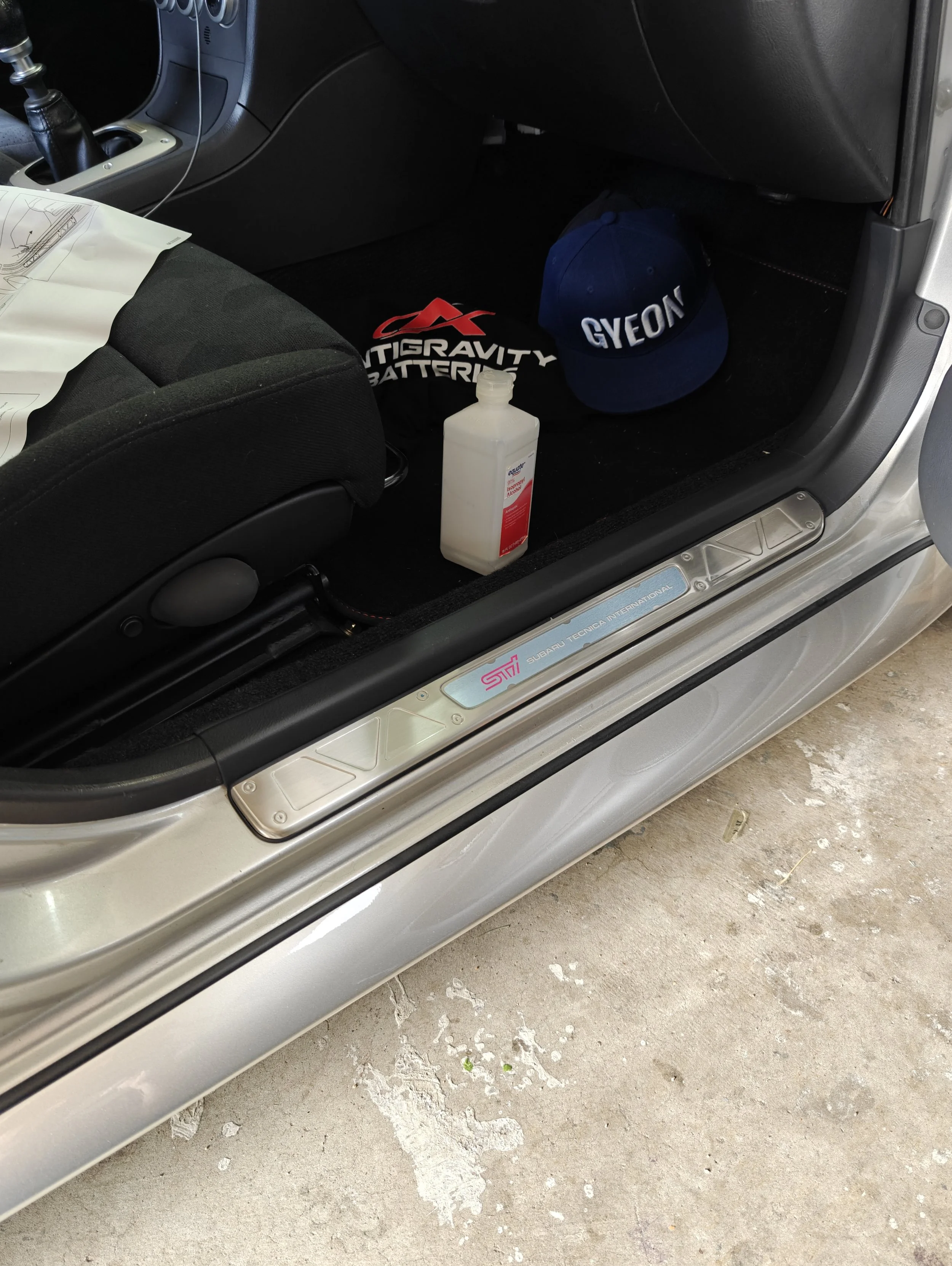 I purchased new door sill trims to make these really pop when I placed them on the car. If you are putting them on older trim pieces, I’d recommend to degrease and clean before applying adding your STi door sill plates.