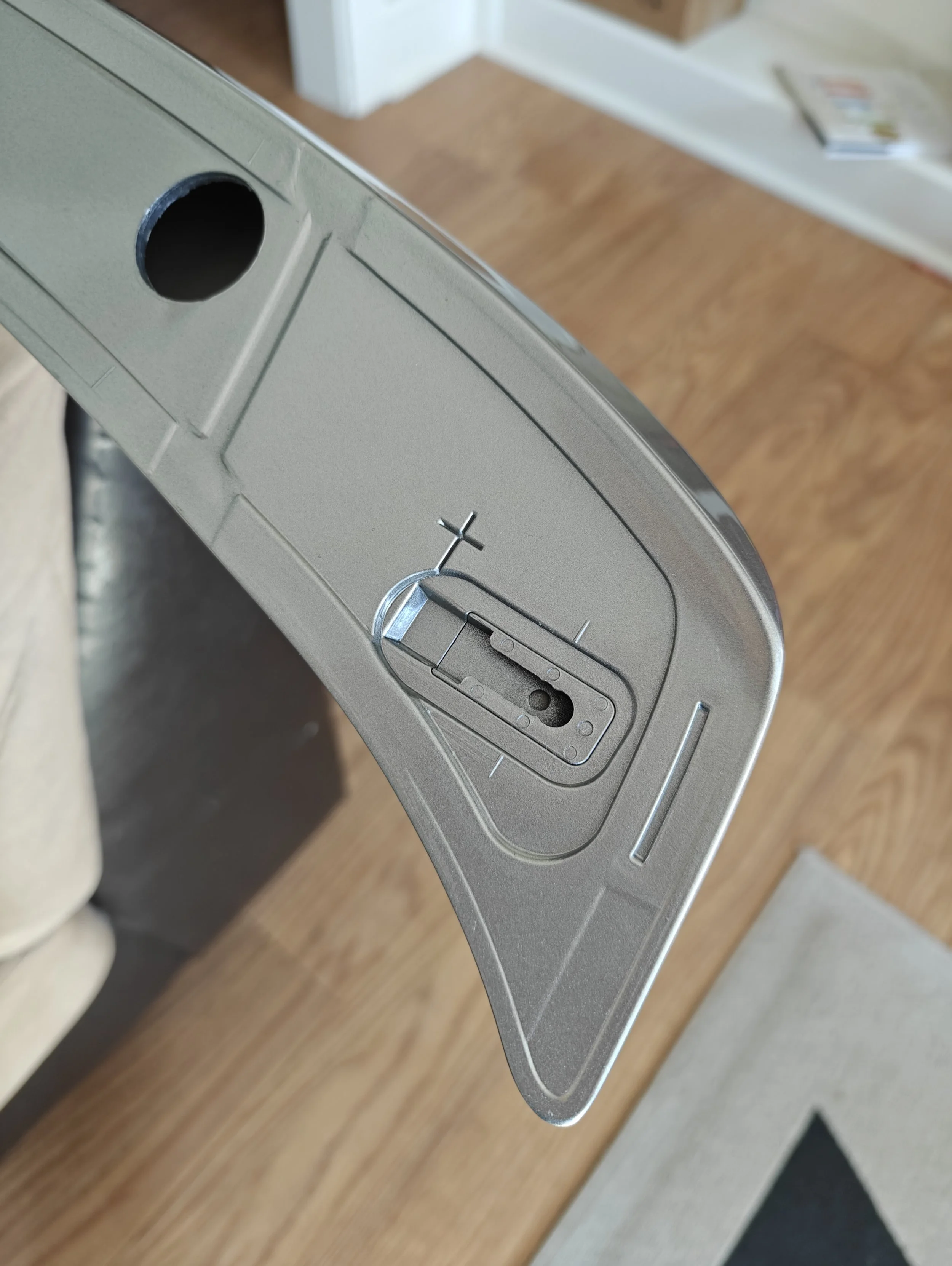 Once you have had the lip painted, it’s time to prep it for the double-sided adhesive tape. This will be performed by cleaning off the area where the tape be applied with isopropyl alcohol, this removes grease, wax and other contaminants. The area where you will want to clean is the raised surrounding visible in the image below.