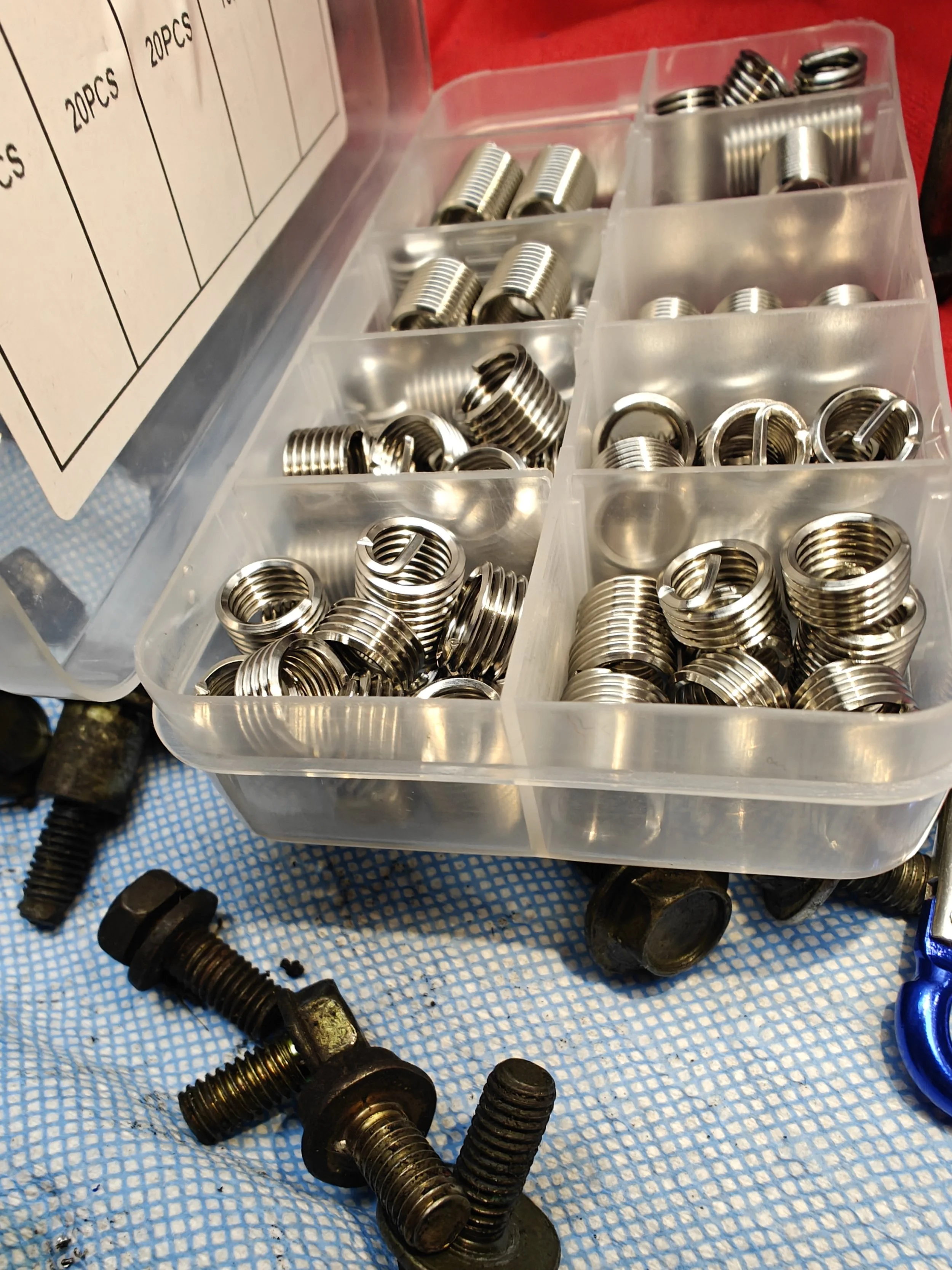 You can test a few bolts to make sure you are getting proper engagement and the helicoil is staying put. If it all stays put, its time to bolt everything back together and move on with your day.