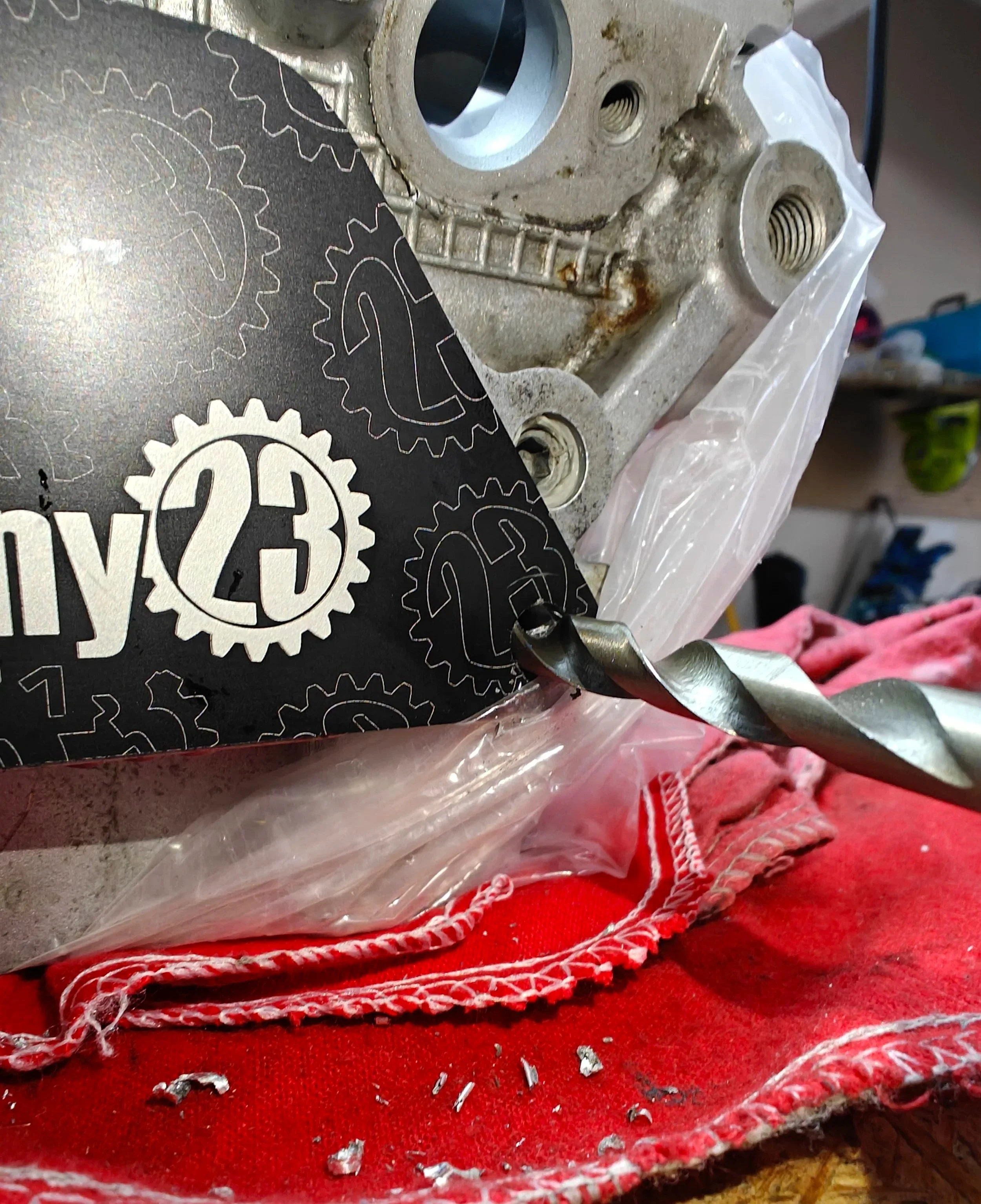 The first step for me is making sure that protect meal shavings from ruining a more expensive part. I found that stuffing a few paper towels into the intake to be sufficent. When I was drilling I used the Company23 intake valve covers to help line up the drill bit and add a bit of extra protection.
