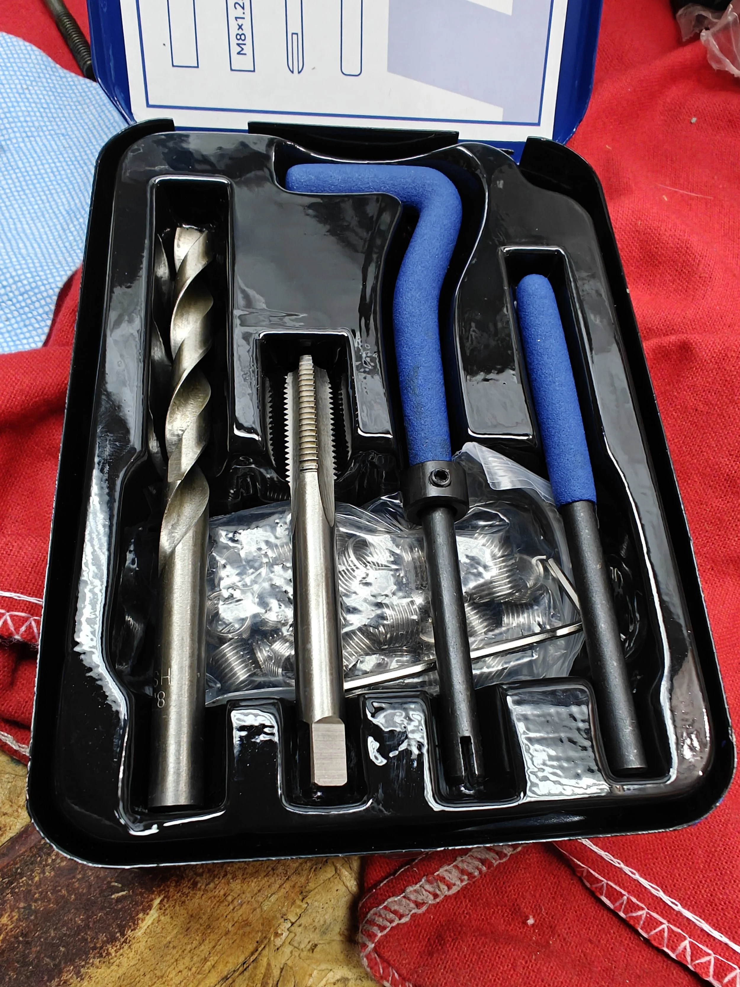 Attempting to install my Company23 intake covers quickly showed that the threads weren’t happen when I couldn’t hand thread the bolt in. While there are many ways to fix this, I already had a 8x1.25 helicoil tool set on hand and decided this would work for now. If I want to go back and further add some durability to it, a good choice can be a timesert. But let’s see how the helicoil fairs for now.