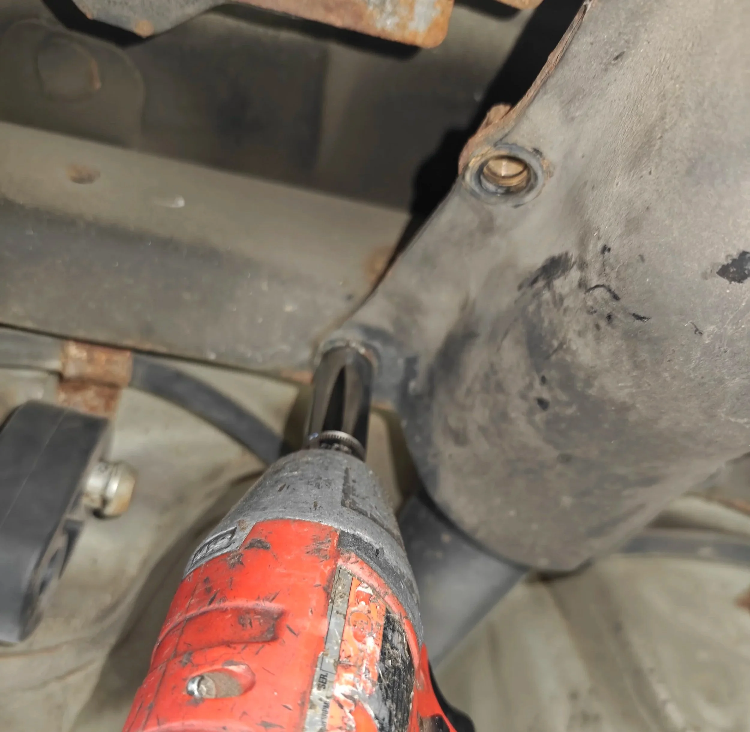 Now you have access to the rear driveshaft pinion and can start removing the bolts.