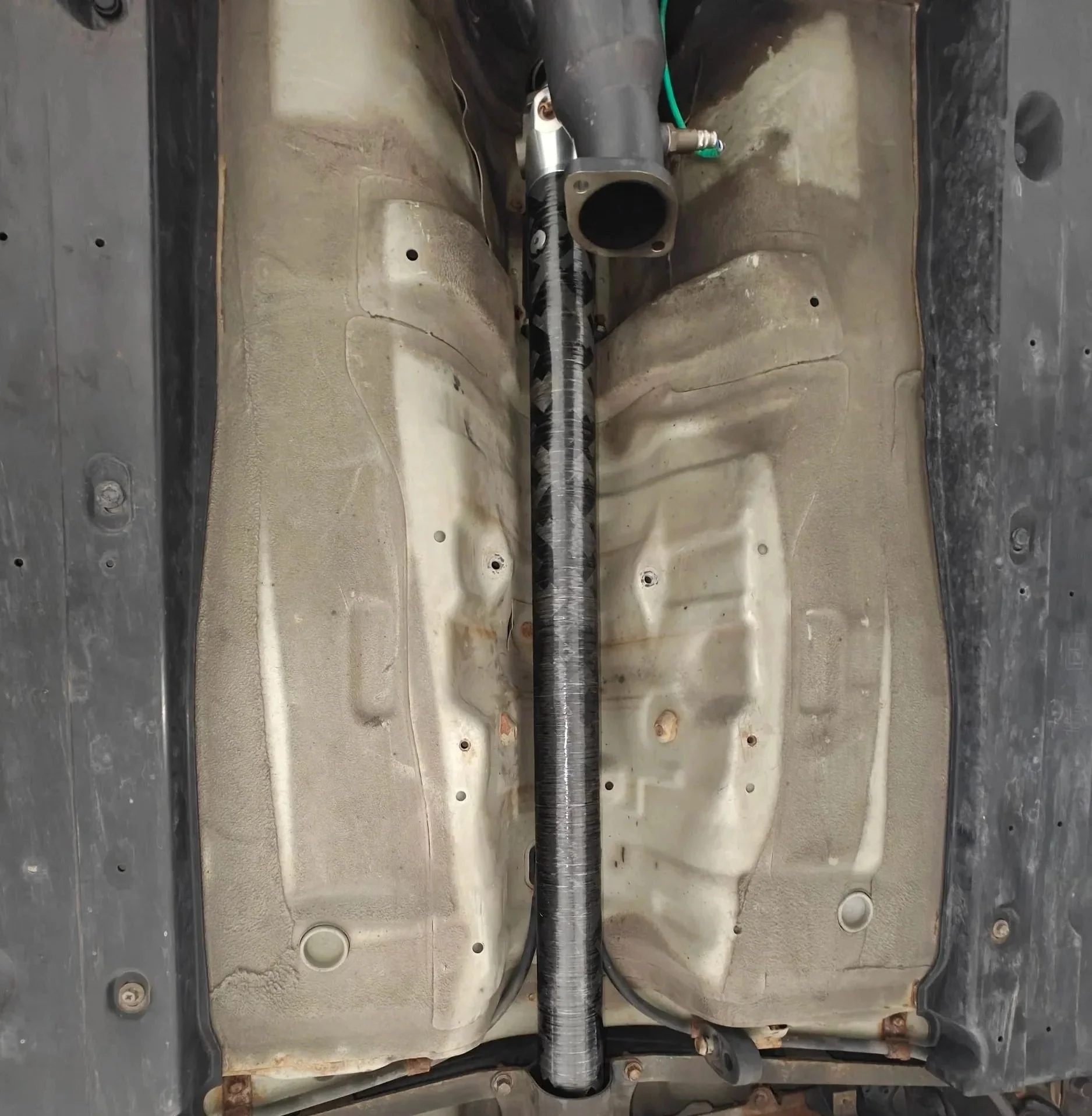 Once the new driveshaft is in you might notice that it looks different. Most of the carbon fiber driveshaft options out there don’t have the outer cover that is fitted to the factory driveshaft.